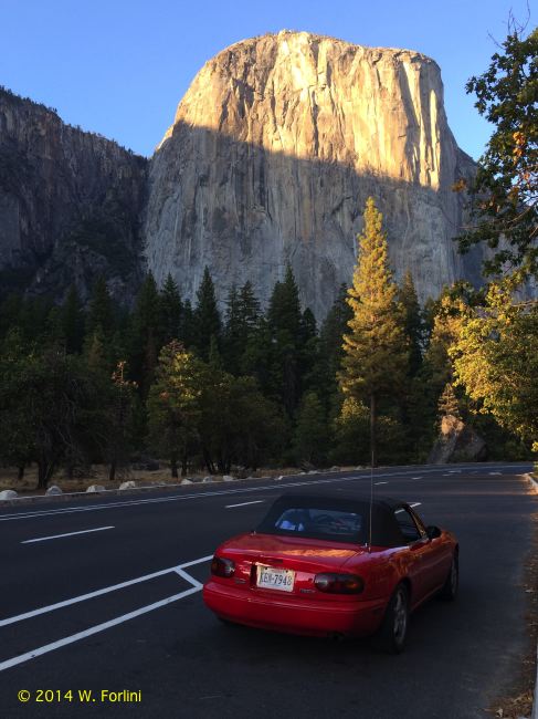 A red Miata at El Capitan.